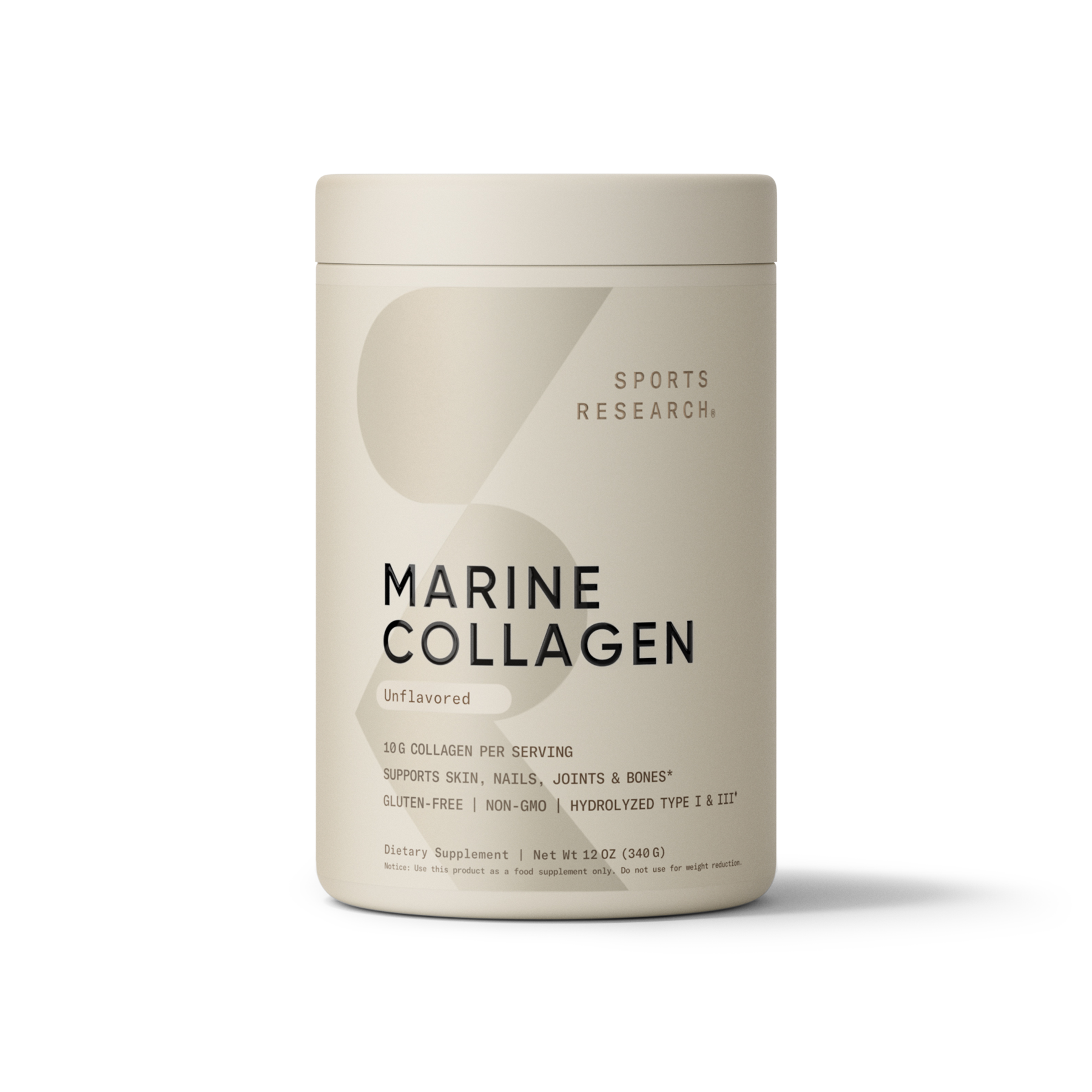 Sports Research Marine Collagen Peptides provide 10 grams of Types I & III collagen with 18 essential amino acids, including glycine, proline, and hydroxyproline. Each serving delivers 9 grams of protein with just 35 calories. Sourced from wild-caught fish, this collagen supports healthy hair and blends easily into your daily routine.
